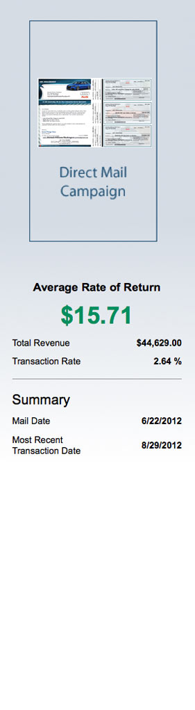 Our reports enable you to determine the revenue from each of our communications, and thus pinpoint additional income derived from resultant customer visits.